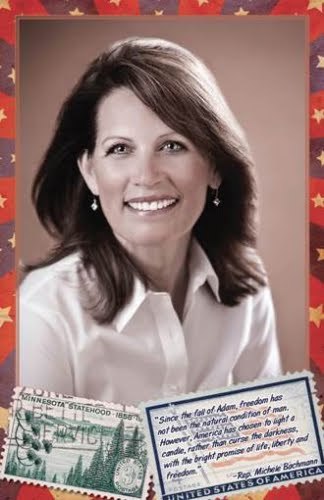 Michelle Bachmann, featured Great American Conservative Woman, as seen in her calendar spread from the Clare Boothe Luce Policy Institute. They somehow seem to have missed Orly Taitz.