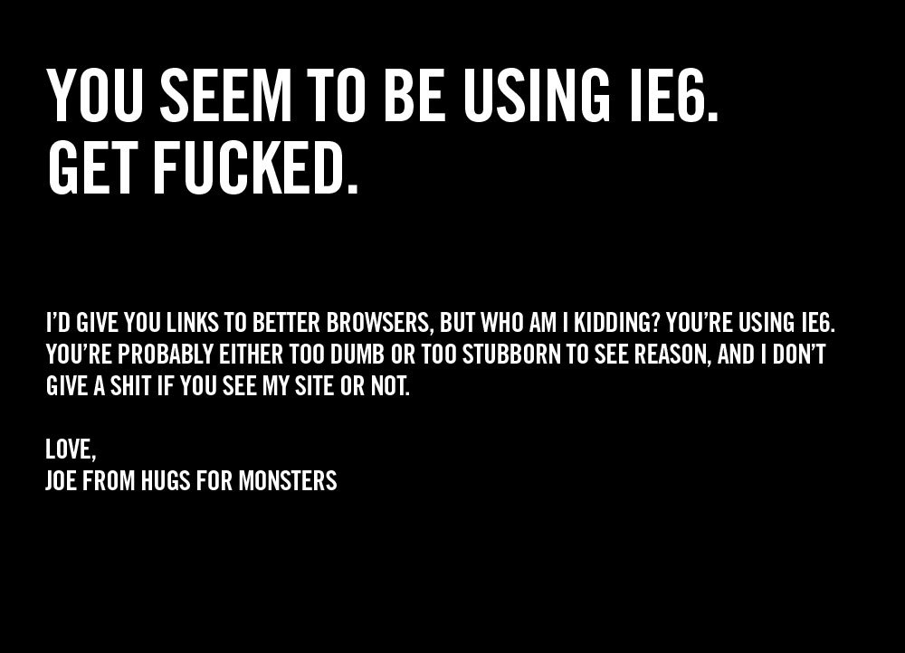 I approve of these IE 6 splash pages. Getting them approved for work might be an uphill battle.